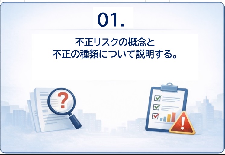 このように、不正の分類を明確に理解することで、内部監査人としてのリスク評価や監査計画の立案において、より的確な対応が可能になります。