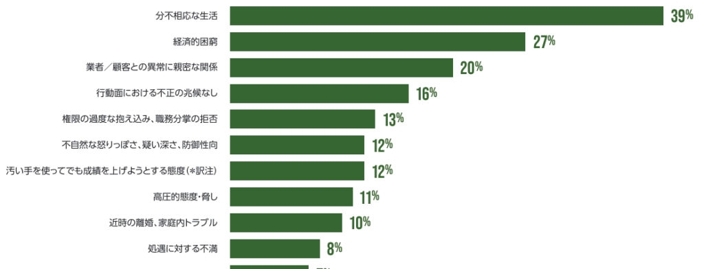 犯行者が示す行動面における不正の兆候(ベスト10)