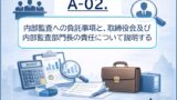 - 内部監査部門長は、職務上は取締役会(又は監査委員会)に直接報告し、管理上は最高経営者(CEO)に報告する体制が望ましいとされます