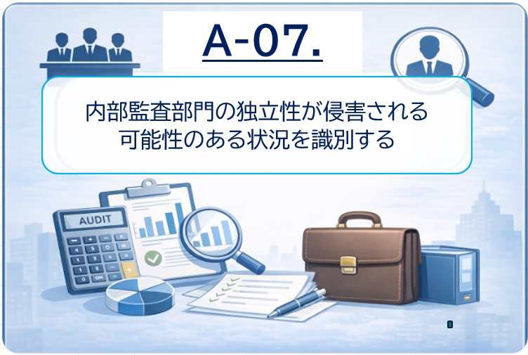 - 内部監査部門長は、独立性の侵害又は侵害の可能性を常に認識し、評価します